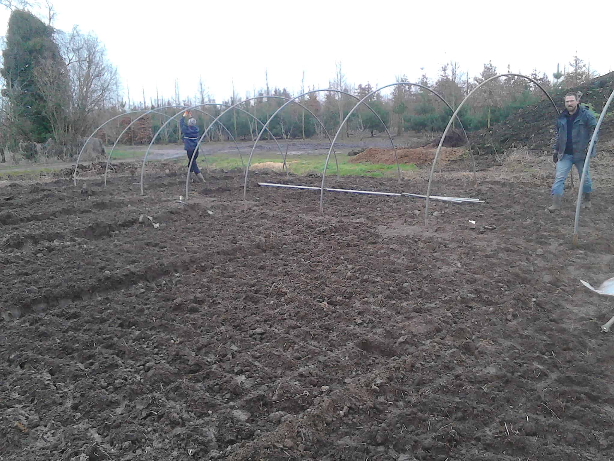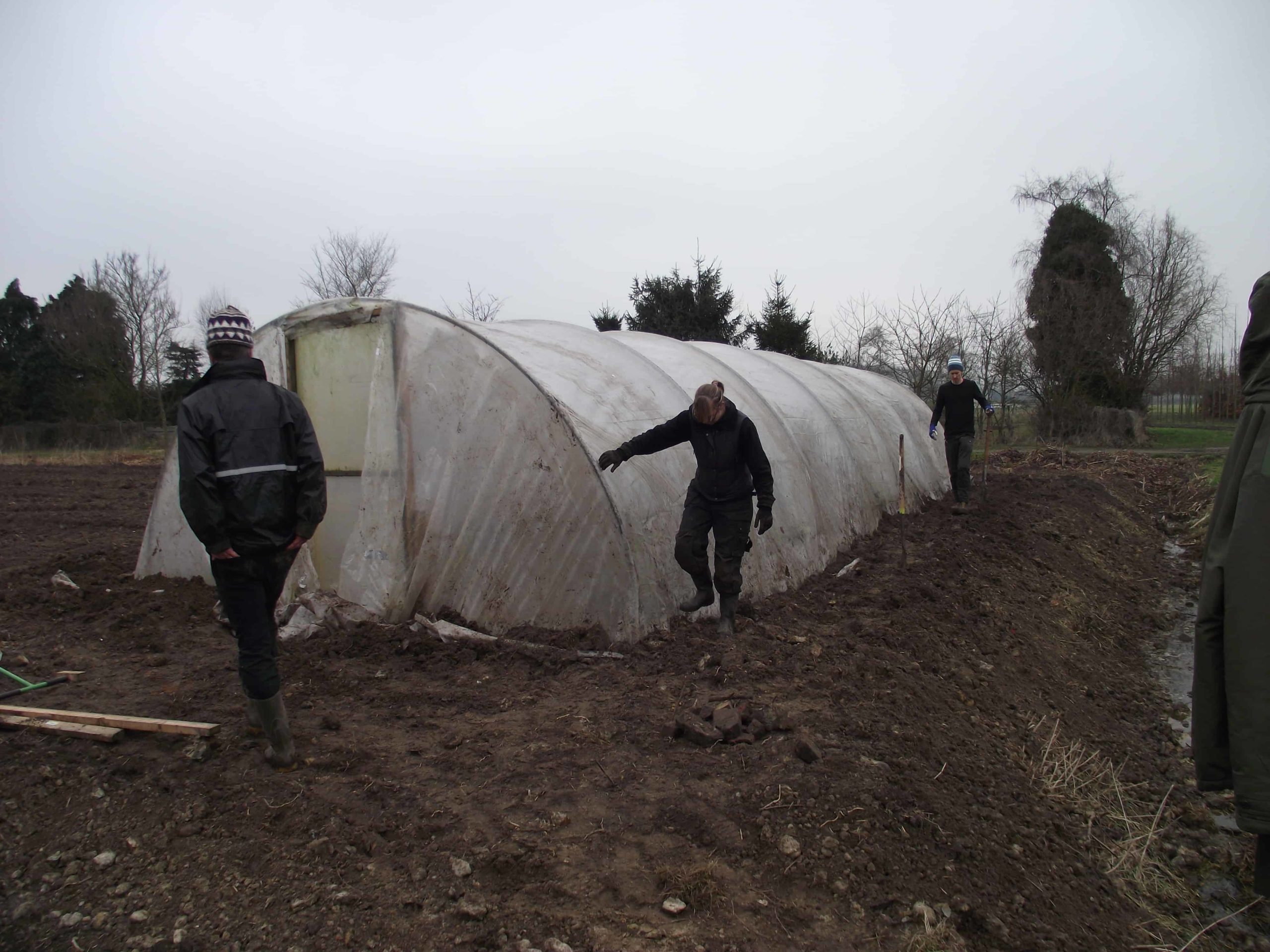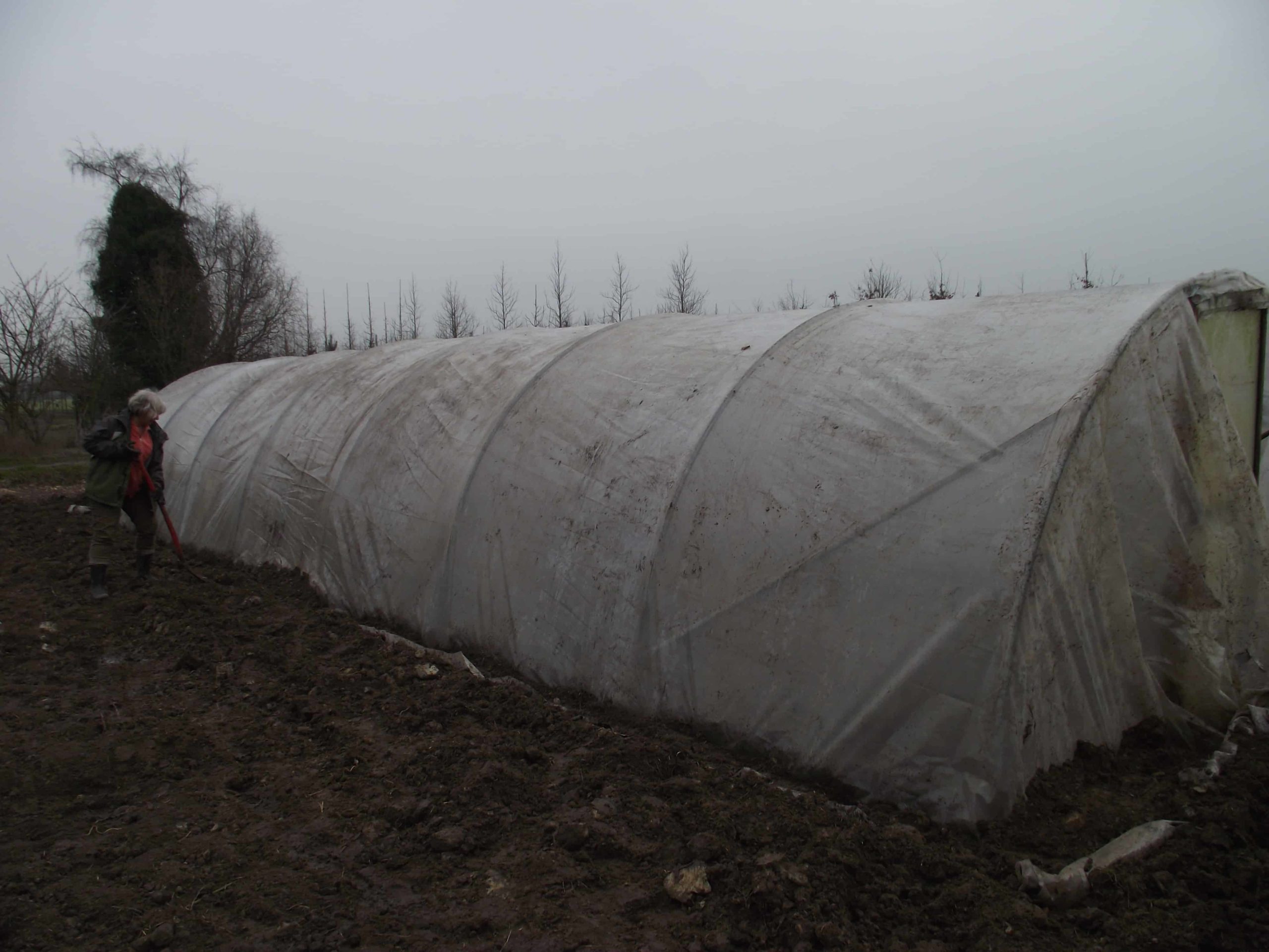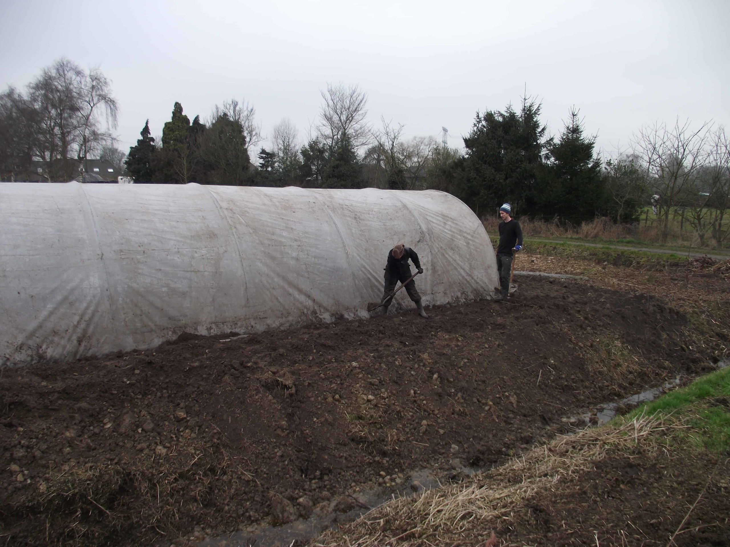 Nu het nieuwe seizoen voor de deur staat zijn we hard aan de slag op de tuin. Project 1: de kas op zetten. Twee dagen aanpoten, maar hij staat: