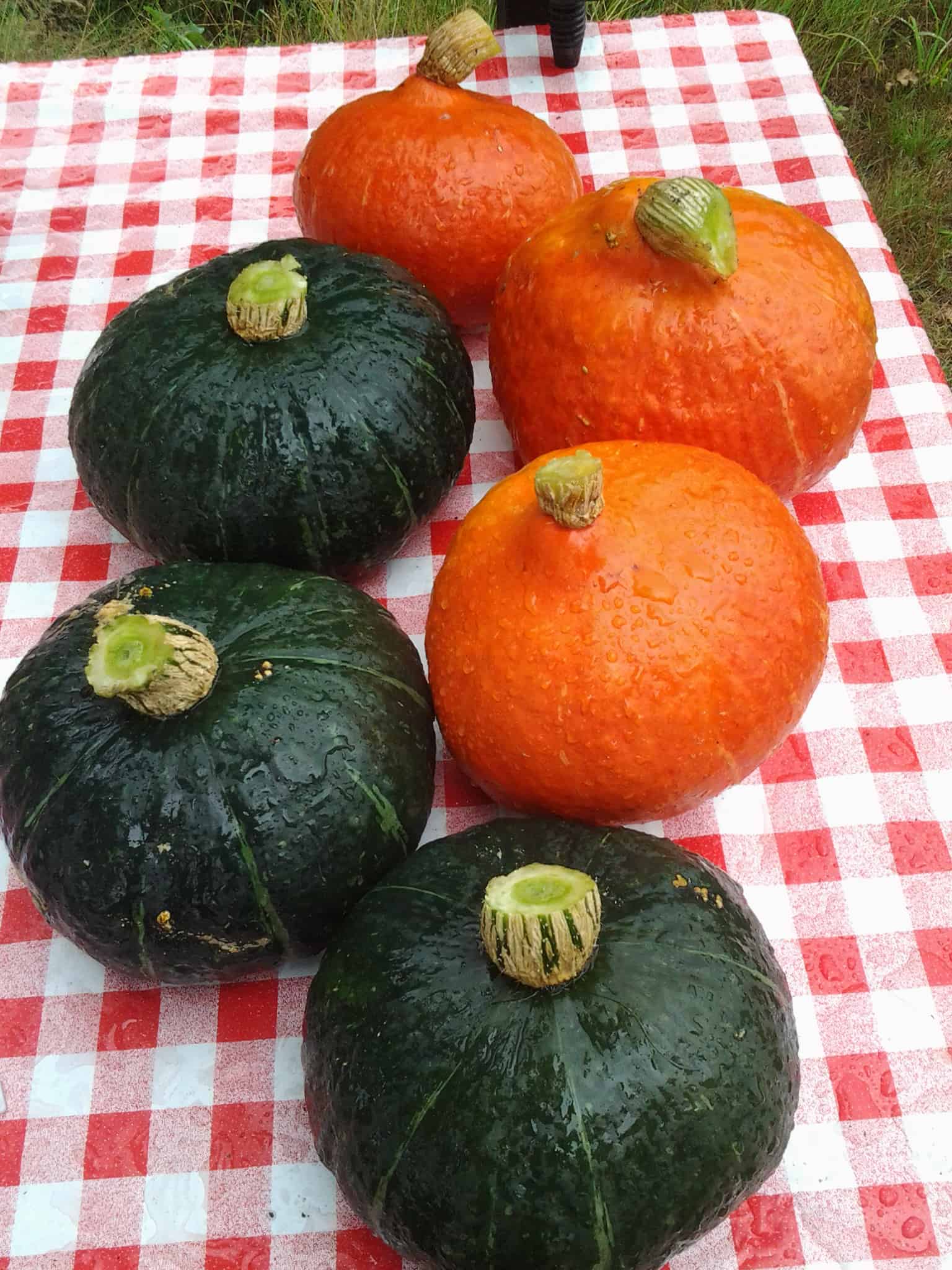 De planten genieten van de regen – en wij zetten onze groenten weer aan de weg. Vandaag hebben we pompoenen, courgette, prei, ui, peterselie en bascilicum in de aanbieding.